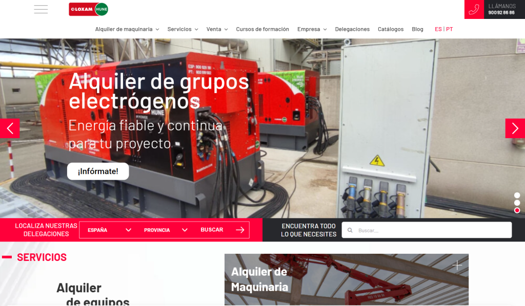 También ofrece formación, mantenimiento y energía temporal, respaldada por estrategia ESG alineada con la Agenda 2030. Su plataforma online facilita cotizaciones y dispone de línea gratuita 900 para dudas técnicas y asistencia fuera de horario.