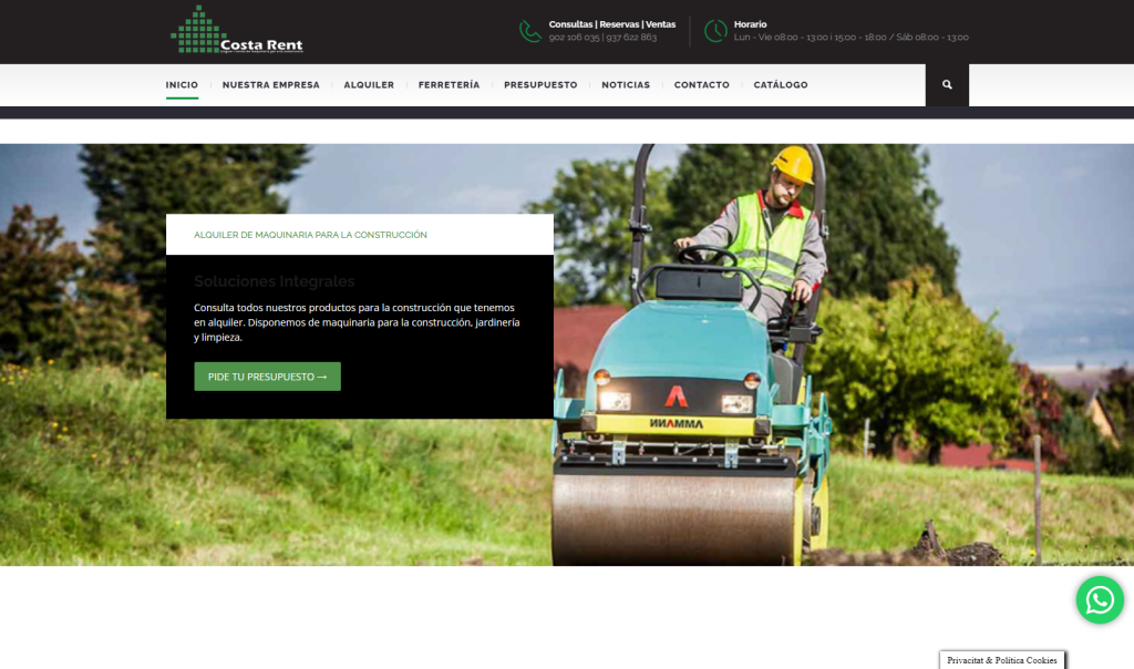 Costa Rent nació en 1975 en Pineda de Mar y hoy opera dos delegaciones en la Costa Brava. Su web lista catorce familias de producto que van desde andamios europeos hasta sanitarios portátiles para eventos.